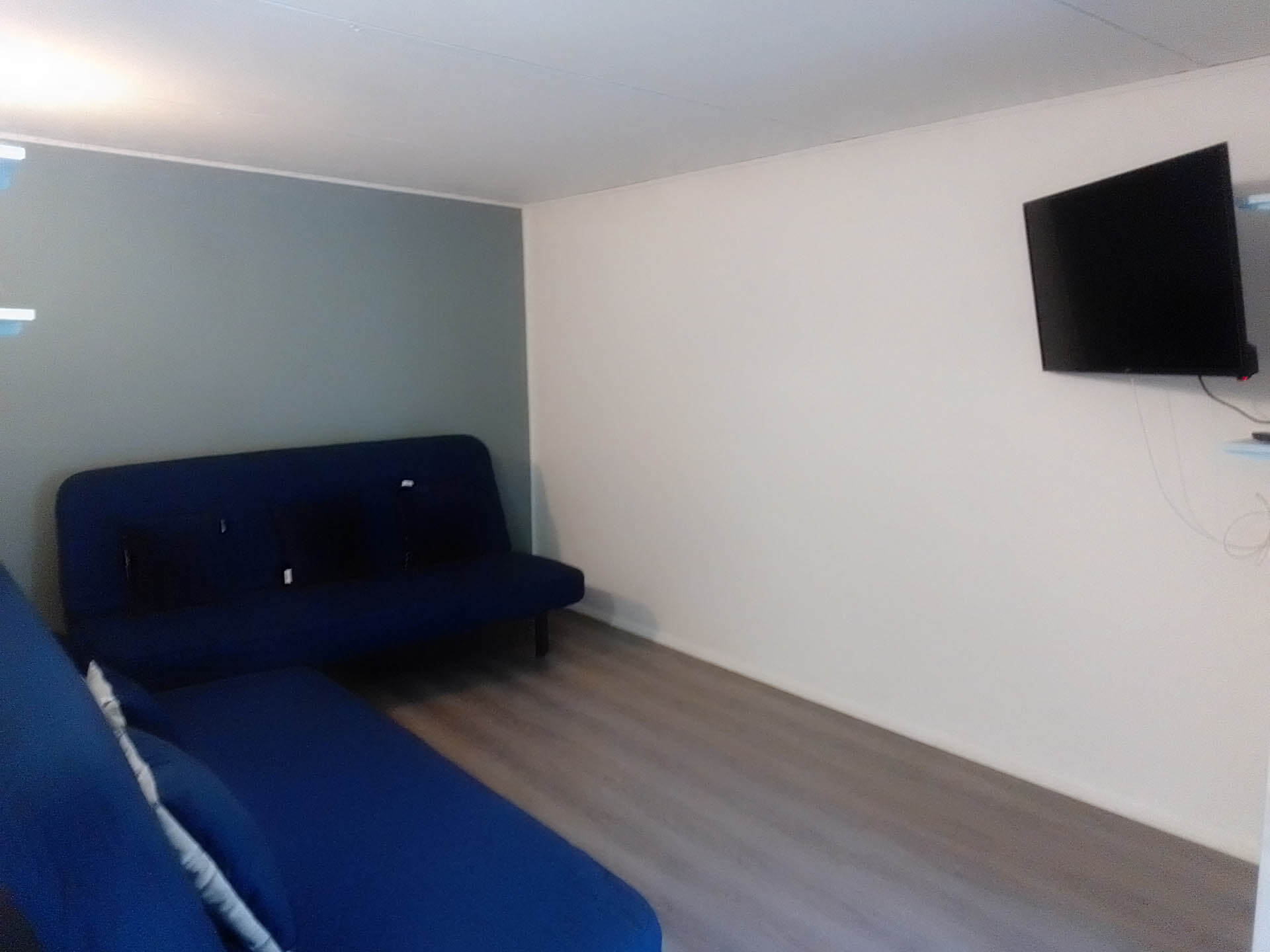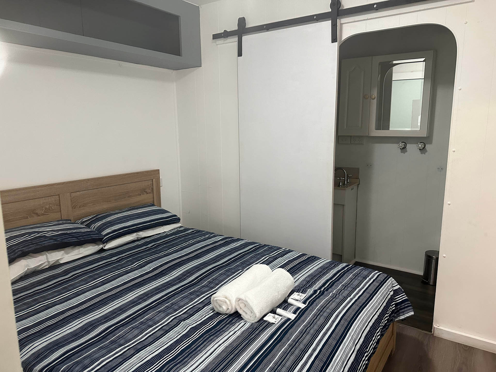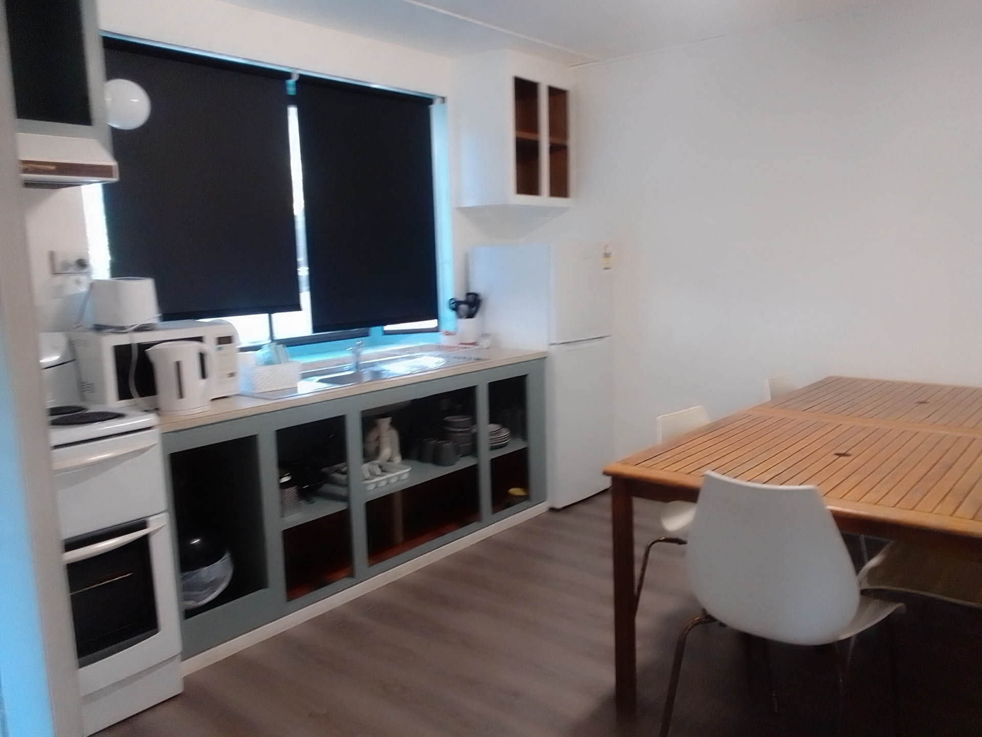 Complete with microwave, toaster, kettle, crockery and cutlery.