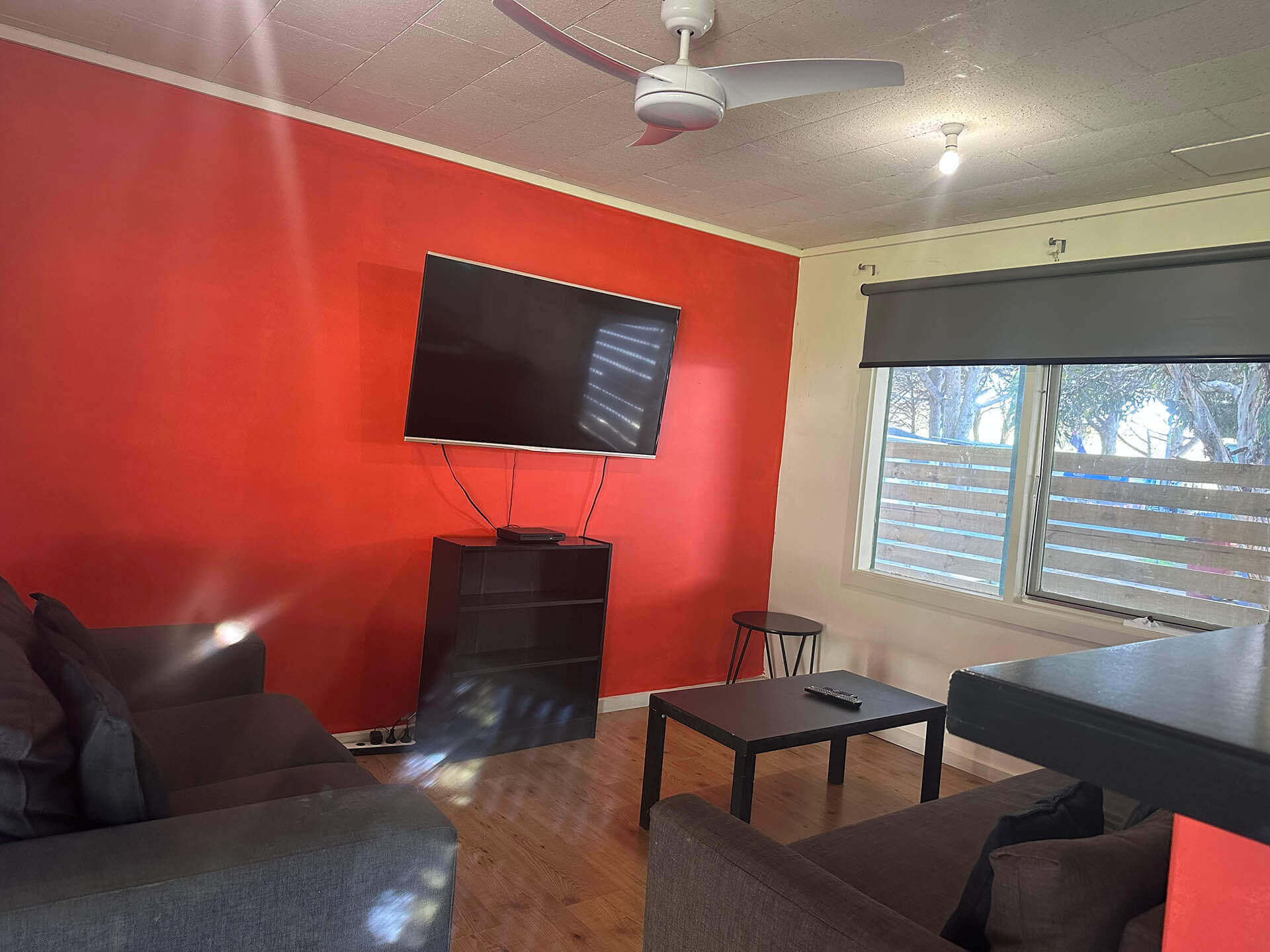 - Wall mounted TV in main bedroom